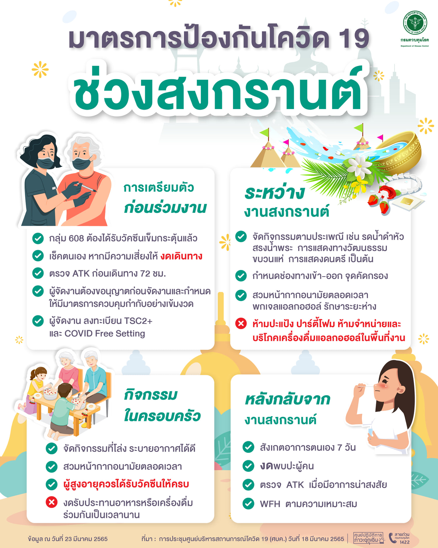 มาตรการป้องกันโควิด 19 ช่วงสงกรานต์ 2565